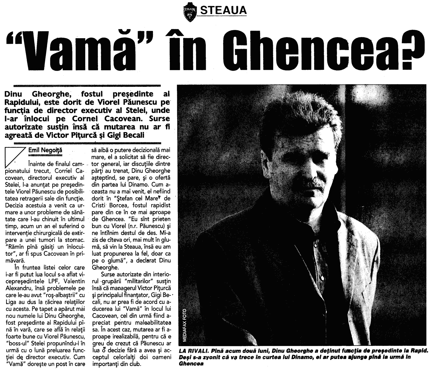 Faptul ca unii considera un meci cu Astra, terminat 2-1, cu mai multe ocazii steliste ratate, ca o performanta, e treaba lor. Numai ca imediat apar un FCM Targu Mures sau un Gaz Metan Medias, echipe mediocre, care ar trebui sa le dea de inteles ca lucrurile nu sunt nici pe departe asa de roze cum ar vrea ne-a Jiji sa para.